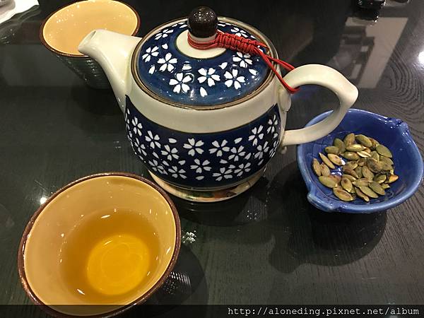帶位後,送上一壺阿里山茶及一小盤烘炒南瓜子